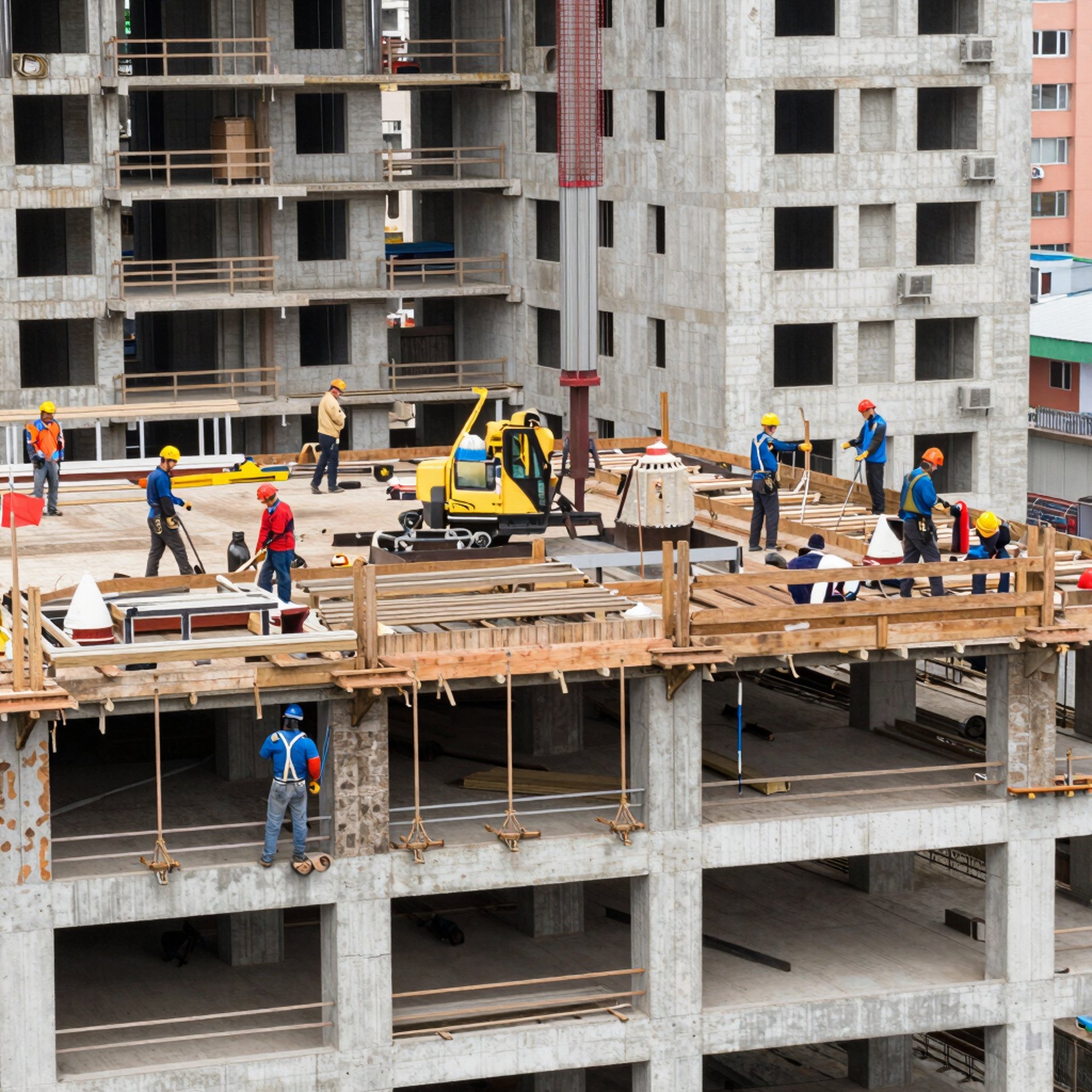 Specialized Tools: Steel bar bending machines, concrete grinding machines, welding machines, and high-pressure water pumps.